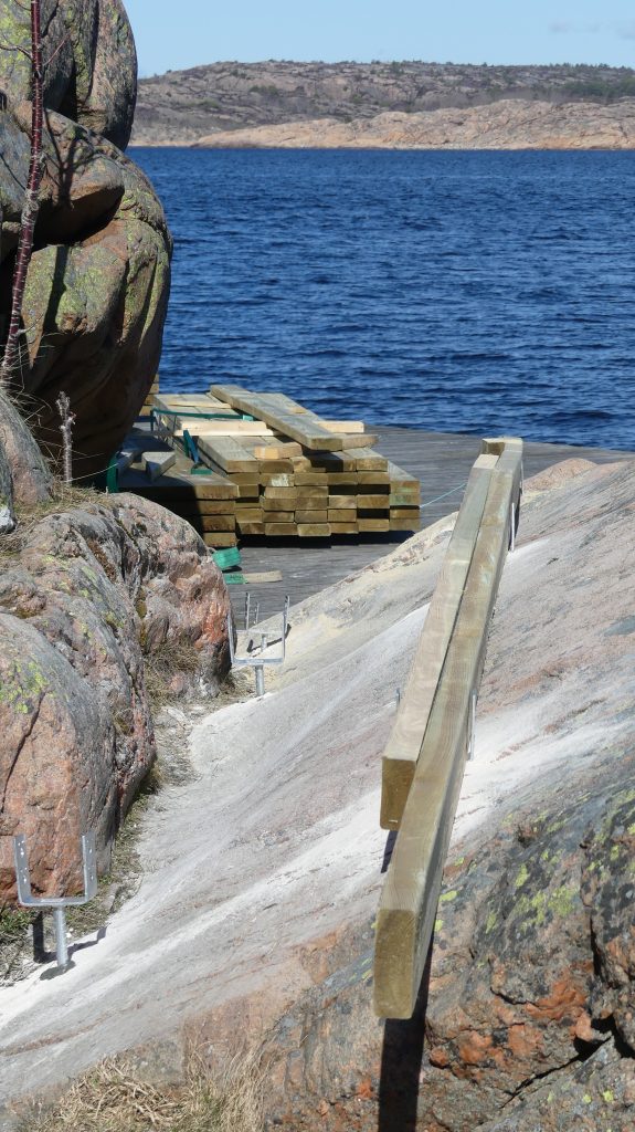 Nu har arbetet med att förbättra och bygga till bryggorna vid badplatsen ute på Valboholmen påbörjats av Lysekils Vänner. Detta görs för att framkomligheten ska bli lättare och säkrare. Fler stegar till vattnet och soffor och stolar kommer också att tillverkas för att göra det trivsammare.
